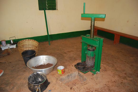 La presse à karité. Grâce à cette presse, nous pouvons extraire le beurre de karité. Activité générée principalement par les femmes.
