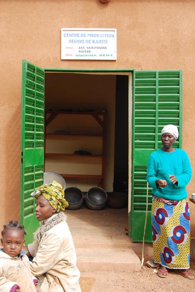 Le centre d’extraction du beurre de karité avec des femmes au travail.