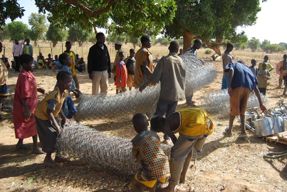 Installation du grillage à You autour du périmètre avec une grande participation des femmes, et de la population en général.