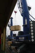 Elles ont été chargées dans la cale par une des grues du bateau. |