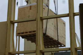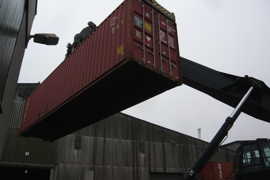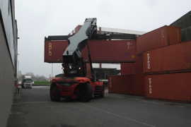 Un élévateur manipule des containers de 40 pieds (12 m) comme un enfant jouerait avec des Lego! |