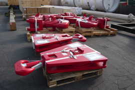 | Ces crochets de respectables dimensions pèsent entre 5 et 8 tonnes pièce. |