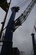 Une barge a accosté notre cargo, amenant trois tourelles de grues semblables à celle du bord.