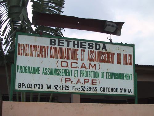 Cotonou, 6 juin 2001L'enseigne de DCAM/Bethesda, un de nos partenaires à Cotonou.