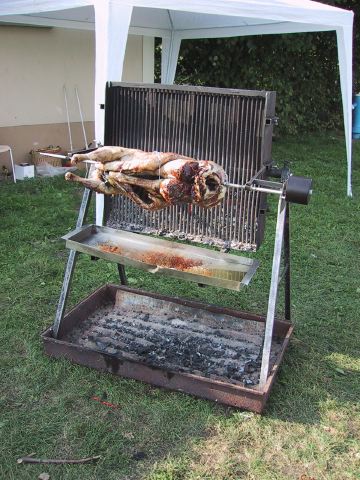 Cossonay, samedi 7 septembre 2002Repas de soutien.La broche tourne lentement...