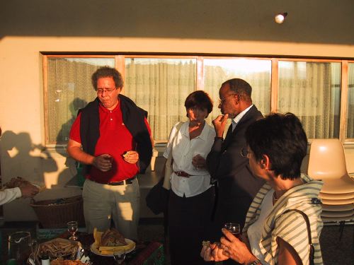 Cossonay, samedi 7 septembre 2002Repas de soutien.L'apéritif au soleil couchant... entrecoupé par la pluie!
