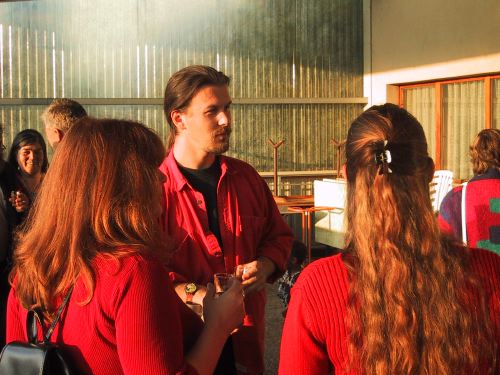Cossonay, samedi 7 septembre 2002Repas de soutien.L'apéritif au soleil couchant... entrecoupé par la pluie!
