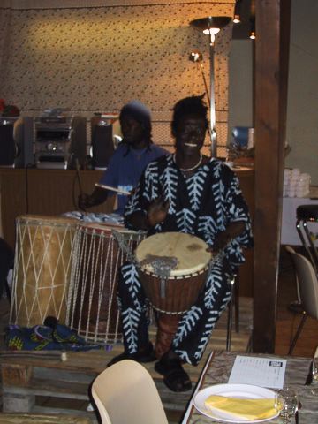 Cossonay, samedi 7 septembre 2002Repas de soutien.Intermède musical avec des djembés et des percussions du Sénégal et de Guinée.