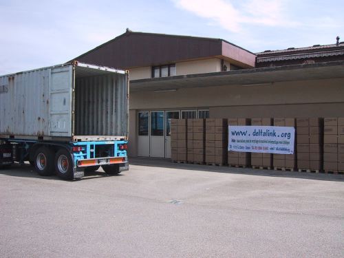 La Sarraz, 29 avril 2003Il est 14 heures, le container de 20' est arrivé... avec le soleil!