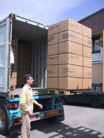 La Sarraz, 29 avril 2003Ni trop haut, ni trop bas, tel est le problème du machiniste! Hauteur des colis: 2m18 Ouverture du container: 2m28