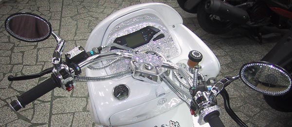 Alors pourquoi pas un scooter de frimeur (ou plus sûrement de frimeuse!) avec des centaines de brillants?