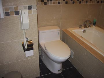 Ensuite, les WC de notre chambre d’hôtel, avec téléphone à portée de main! Au cas où...