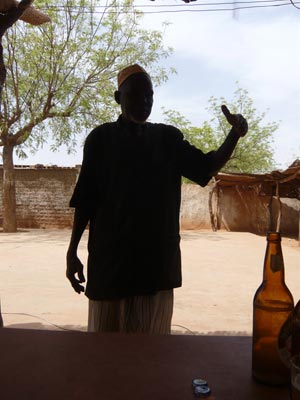 De retour à Lèba, nous buvons une bière au maquis de la place du marché. Une bière fraîche, dans ce village sans électricité? — Merci au bouteilles de gaz et au frigos qui marchent avec cette énergie! Le vice-président du CVD profite de notre présence pour m'apporter un poulet et Sayouba est assez populaire pour que l'on doive refuser la 4e tournée offerte par ses amis! [Rappel: Il s'agit de bières de 65 cl!]