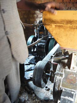 Après la séance, nous nous sommes rendu dans le village voisin: Rassogoma. C'est là que les femmes viennent moudre si les moulins de Lèba ne fonctionnent pas et elles apprécient les qualités du meunier et des machines. Nous pouvons parler avec ledit meunier qui dit qu'en 10 ans de service ce moulin n'avait eu que quelques pannes et encore pas dans les 8 premières années! Preuve à mon avis qu'un bon meunier «fait» un bon moulin! Remarque: moteur et moulin sont de la marque que nous allons choisir.